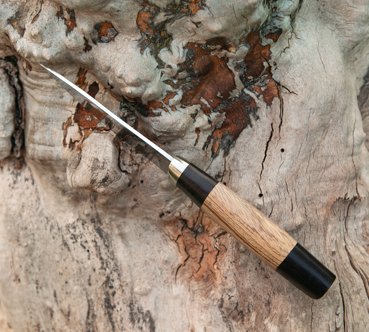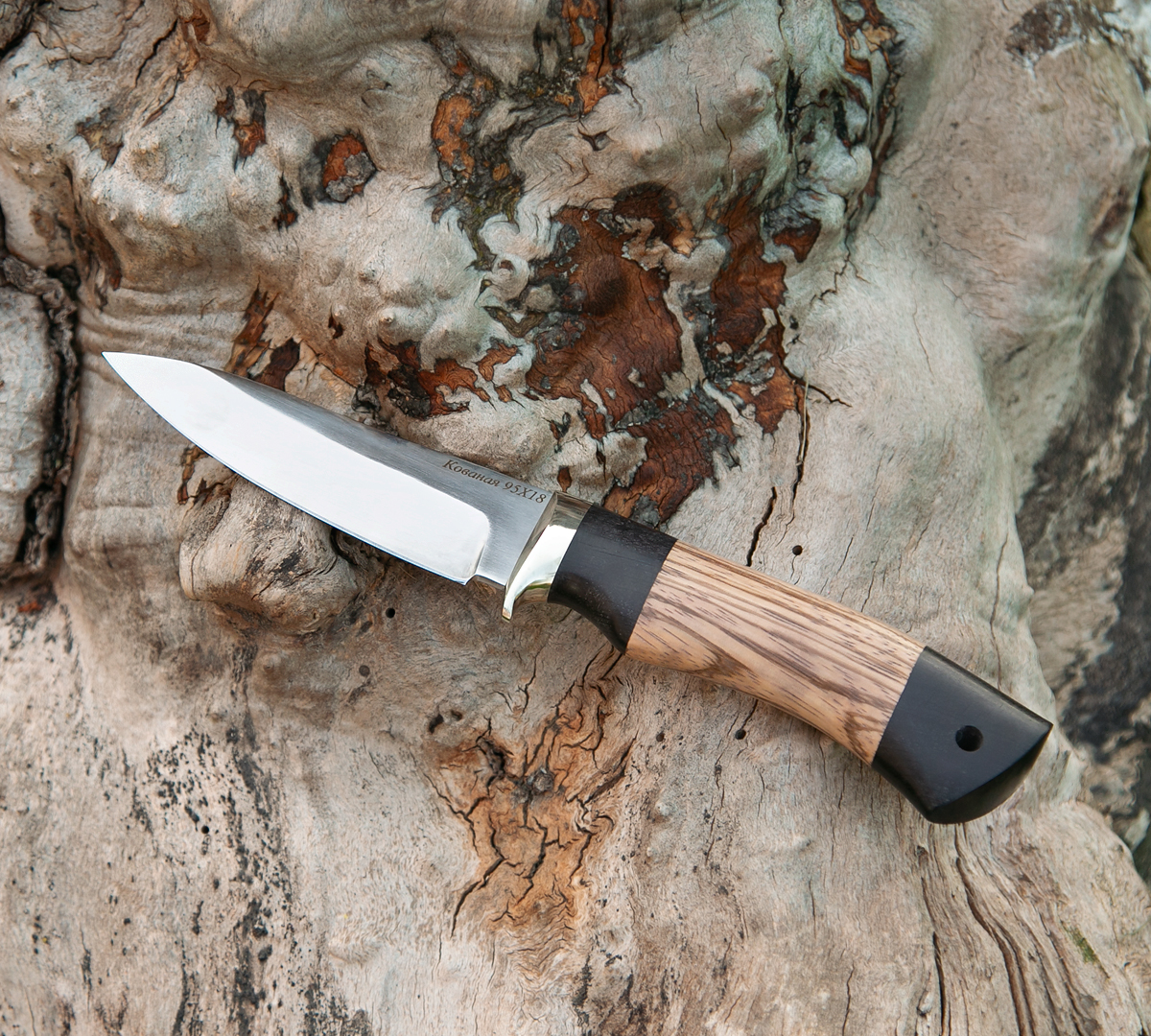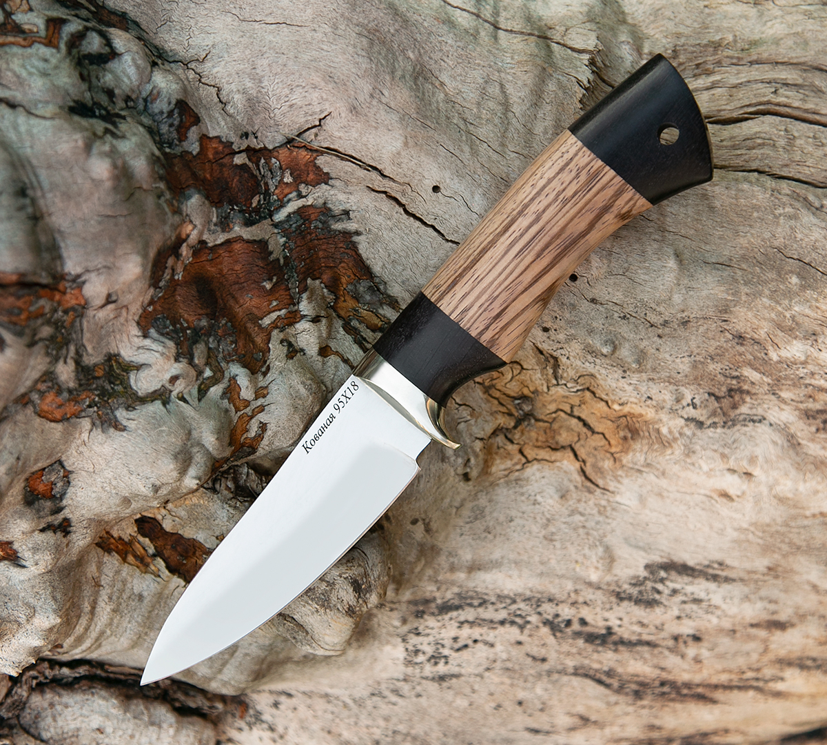 Нож Лань из кованой нержавеющей стали 95Х18, рукоять - зебрано + венге, кожаный чехол в комплекте.